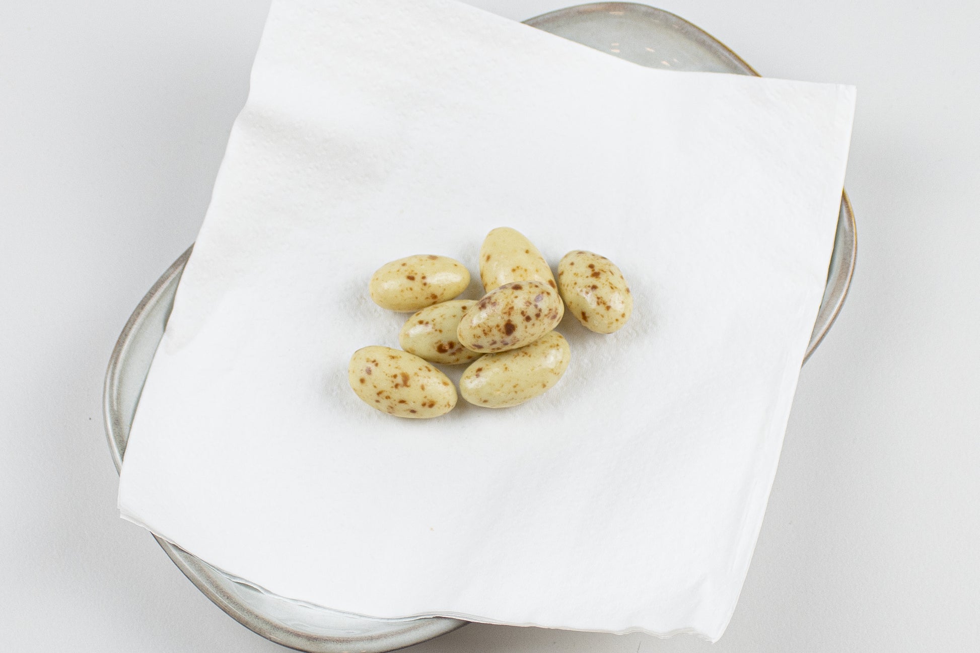 - Amandelen omhuld met witte chocolade en pure chocoladestukjes